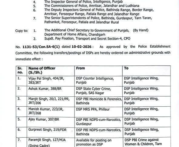 Featured Headlines Punjab News Punjab Police News PUNJAB POLICE’S CRACKDOWN ON 4G/5G TELECOM THEFTS CONTINUES; 17 MORE HELD February 9, 2026