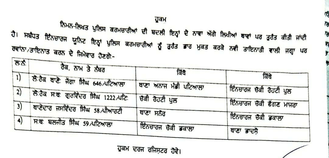 4 Patiala Police officers transferred June 9, 2021 - PatialaPolitics 4 Patiala Police officers transferred #PatialaPolitics SHARE ON TwitterFacebookGoogle+BufferLinkedInPin It Post Views: 0