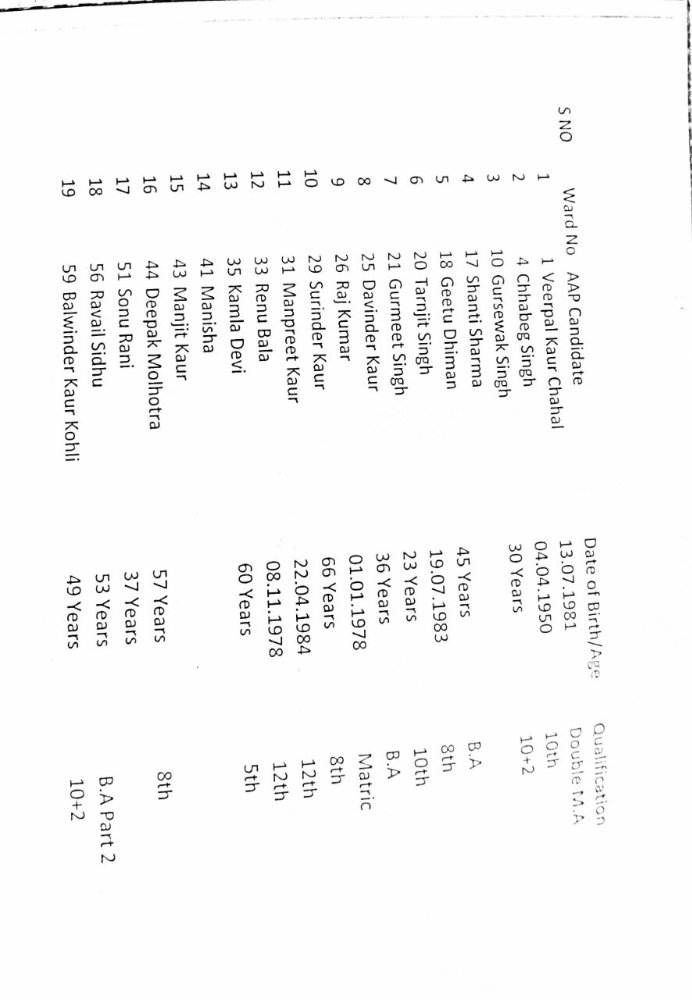 AAP candidates for Patiala MC Elections 2017