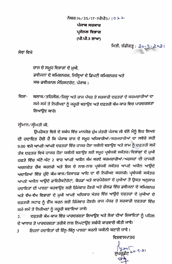 New order for Punjab Government employees 20 September September 20, 2021 - PatialaPolitics SHARE ON TwitterFacebookGoogle+BufferLinkedInPin It Post Views: 0
