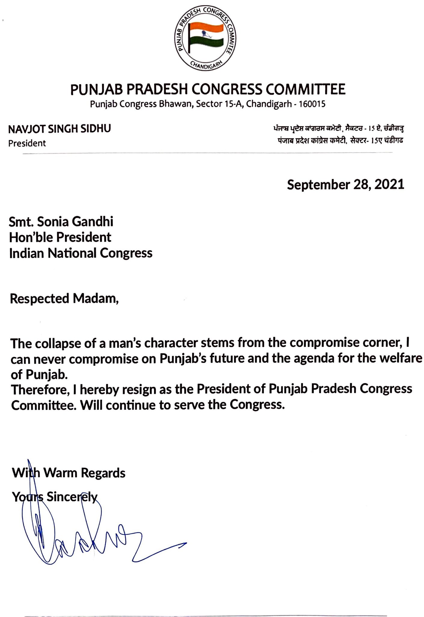 Navjot Sidhu resigns from PPCC September 28, 2021 - PatialaPolitics SHARE ON TwitterFacebookGoogle+BufferLinkedInPin It Post Views: 0