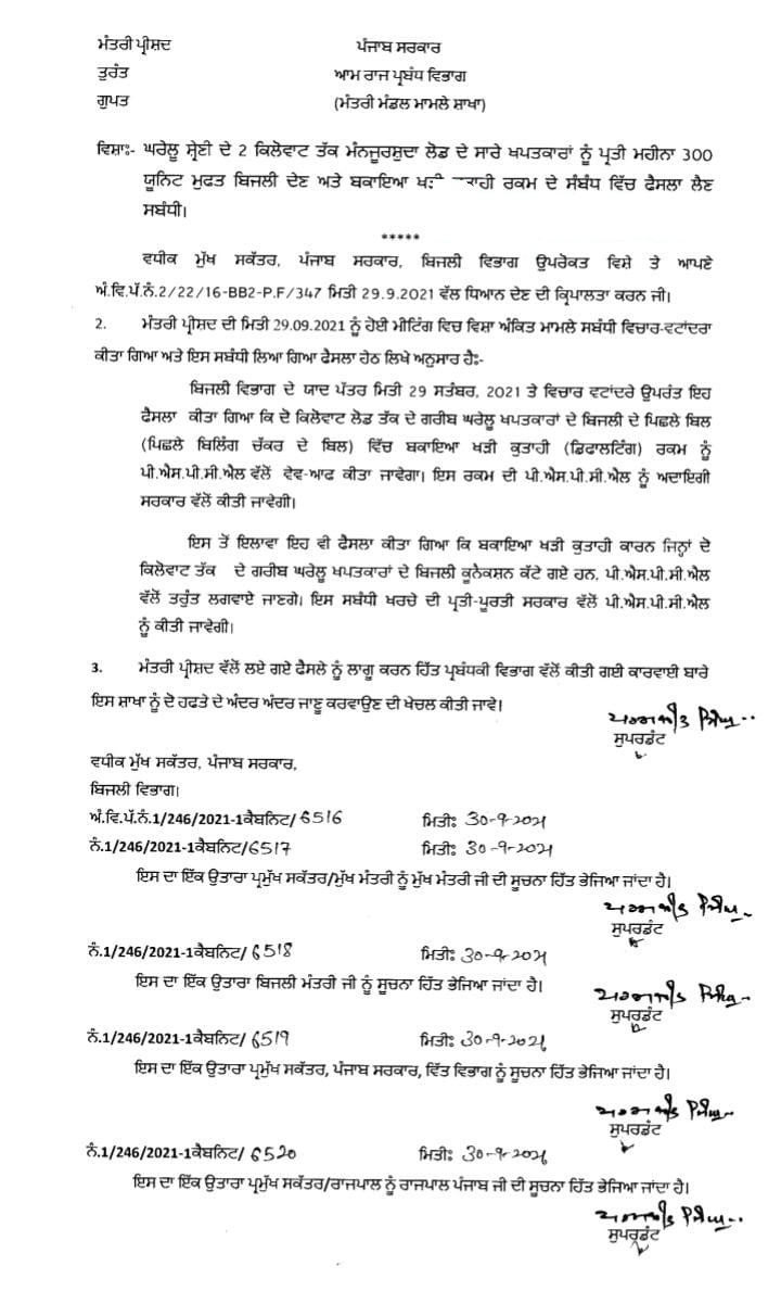 Punjab waive off electricity bills of all defaulters with 2KW connections Notification October 1, 2021 - PatialaPolitics SHARE ON TwitterFacebookGoogle+BufferLinkedInPin It Post Views: 0