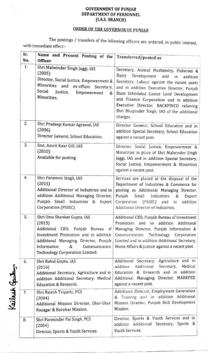 5 IAS-PCS officers transferred in Punjab December 3, 2021 - PatialaPolitics SHARE ON TwitterFacebookGoogle+BufferLinkedInPin It Post Views: 0