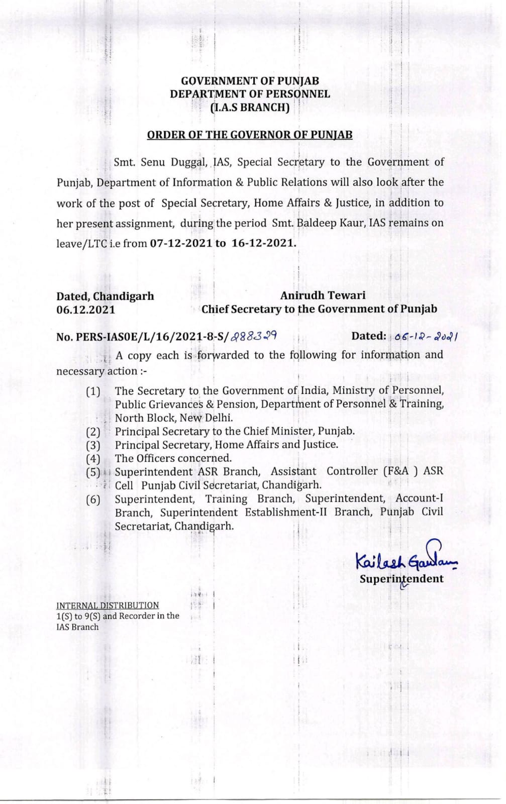 Senu Duggal gets additional charge of Special Secretary Home affairs & Justice December 7, 2021 - PatialaPolitics SHARE ON TwitterFacebookGoogle+BufferLinkedInPin It Post Views: 0