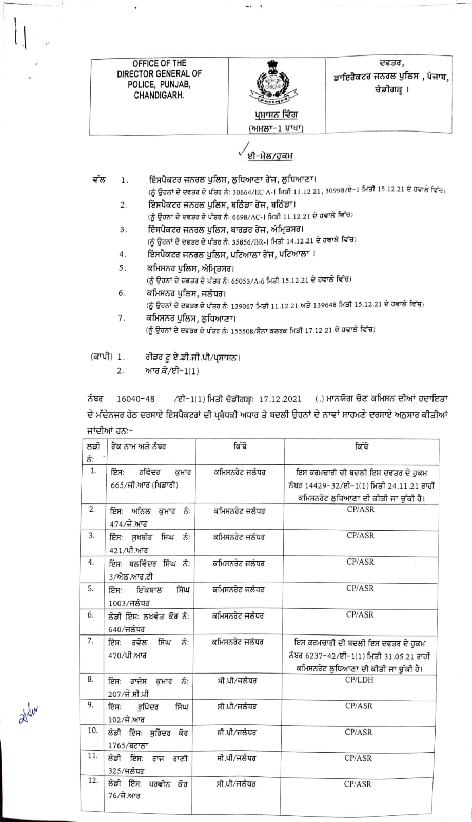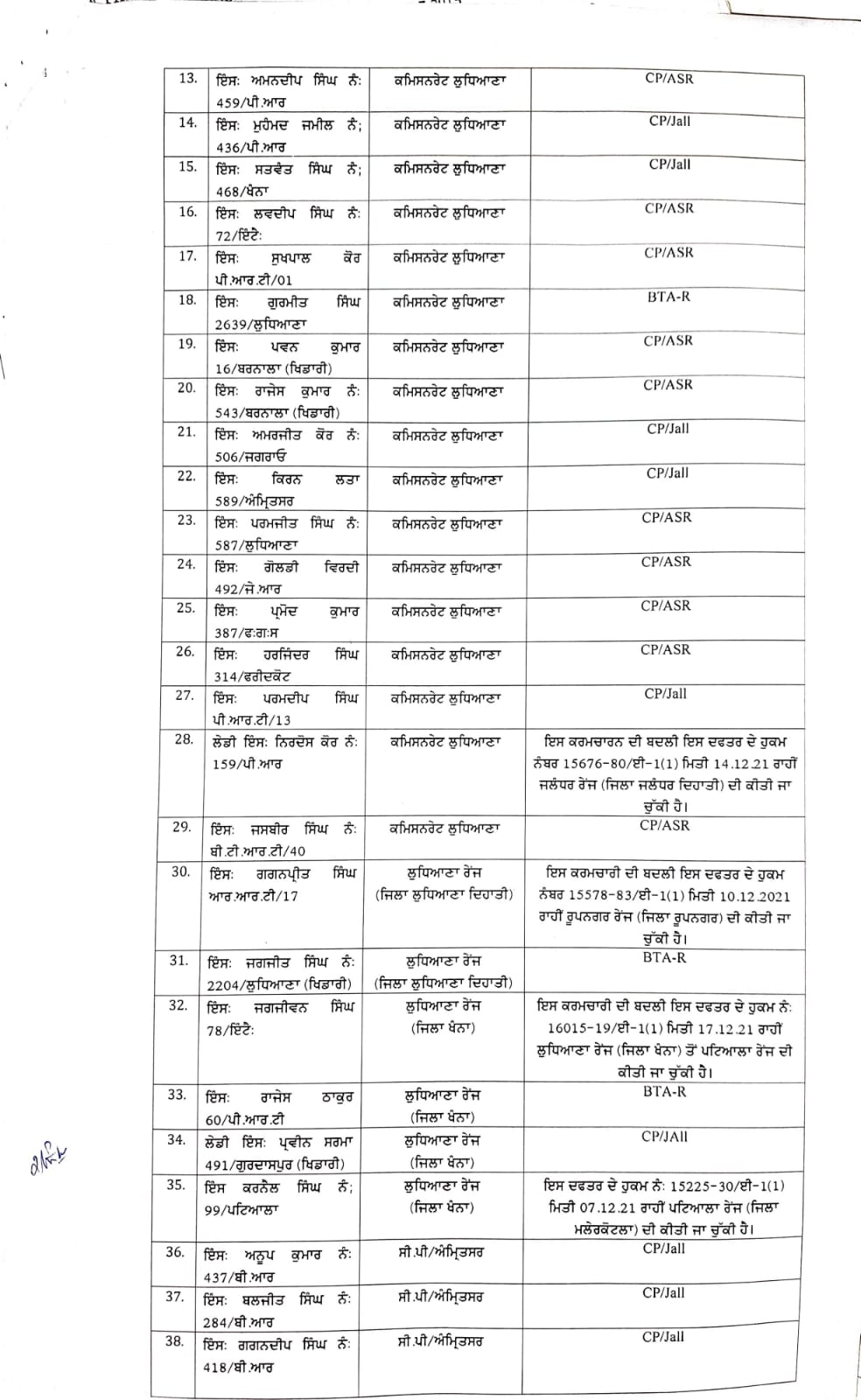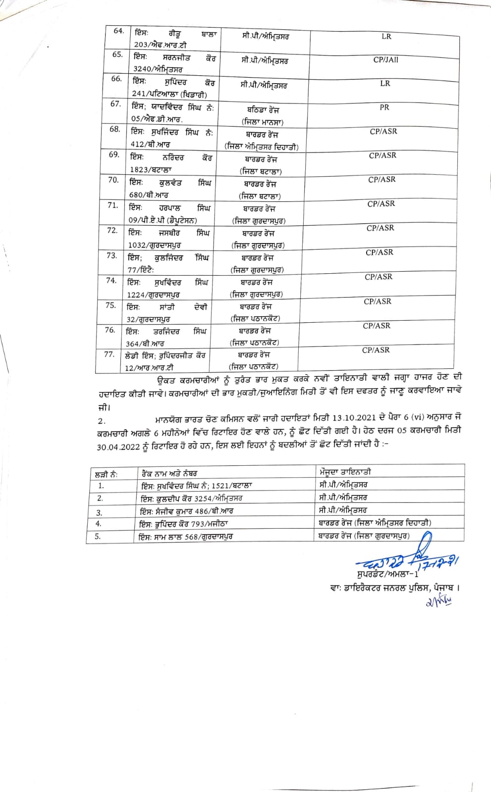 77 Punjab Police officers transferred