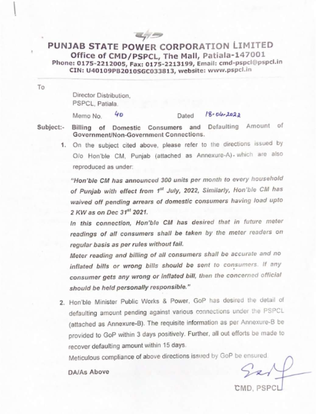 Notification regarding Free Power Electricity in Punjab April 18, 2022 - PatialaPolitics Notification regarding Free Power Electricity in Punjab SHARE ON TwitterFacebookGoogle+BufferLinkedInPin It Post Views: 0