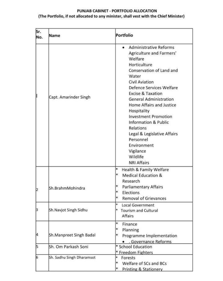 New Portfolio of Punjab Cabinet Ministers April 21, 2018 - PatialaPolitics New Portfolio of Punjab Cabinet Ministers SHARE ON TwitterFacebookGoogle+BufferLinkedInPin It Post Views: 0