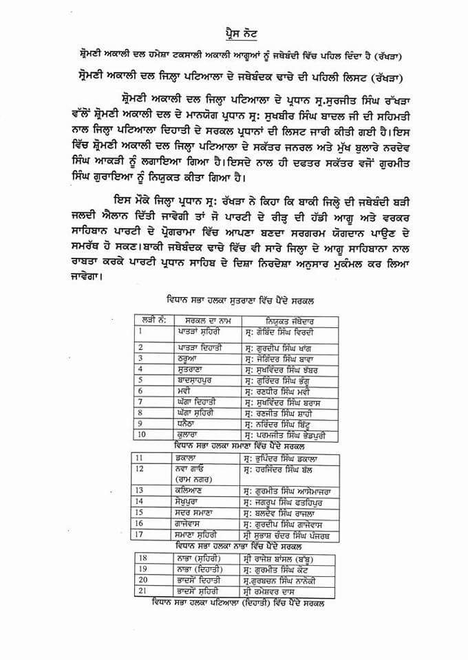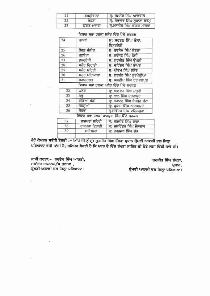 List of Akali Dal Patiala office bearers May 3, 2018 - PatialaPolitics SHARE ON TwitterFacebookGoogle+BufferLinkedInPin It Post Views: 0