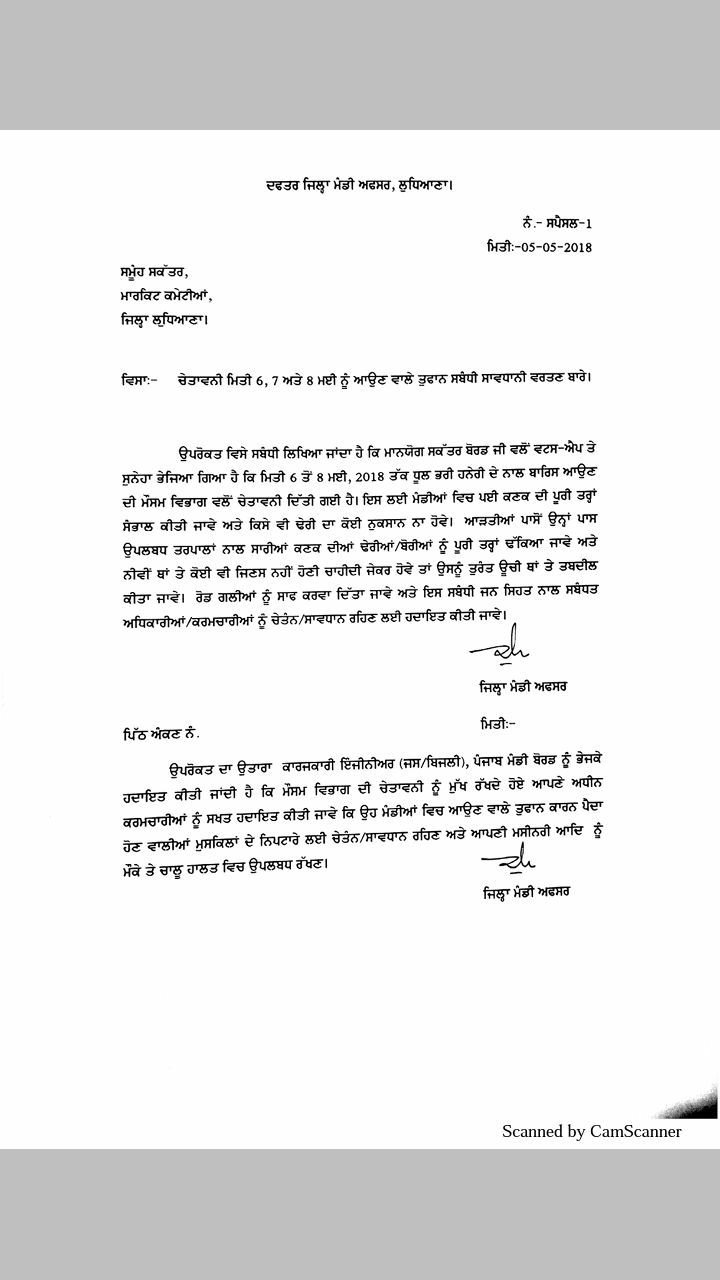 IMD Light rain/ Thunder showers likely at isolated places during next 48-72 hours in Punjab. The rain/ thunder shower activity is likely to increase in intensity and spread between 7th and 8th May 2018. Thunderstorm accompanied with Squall is also likely at isolated places during this period.