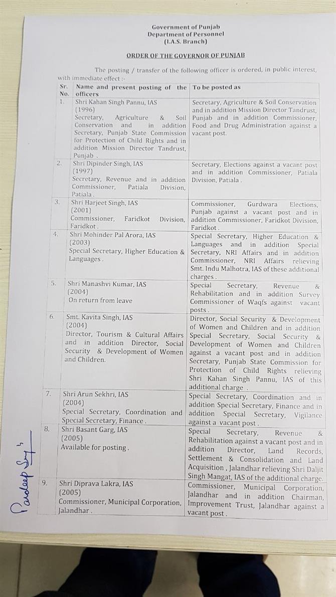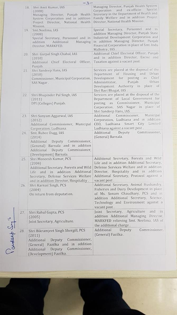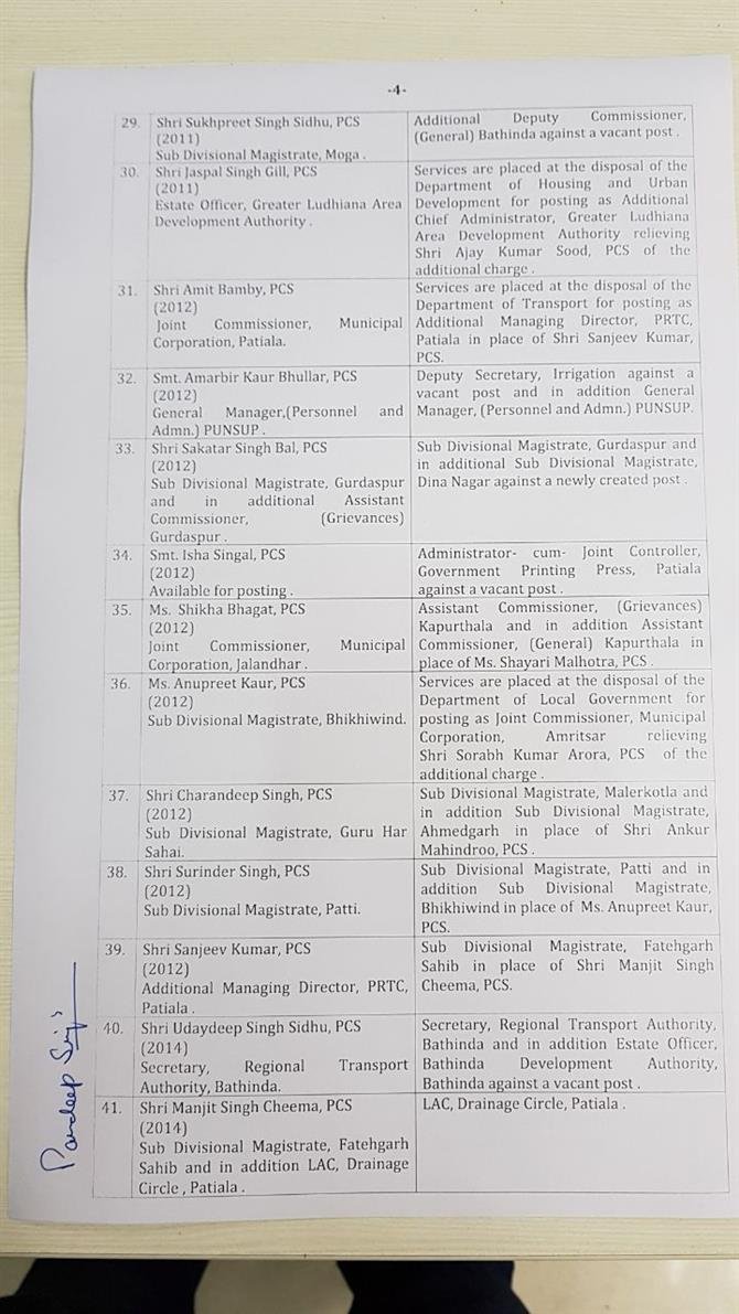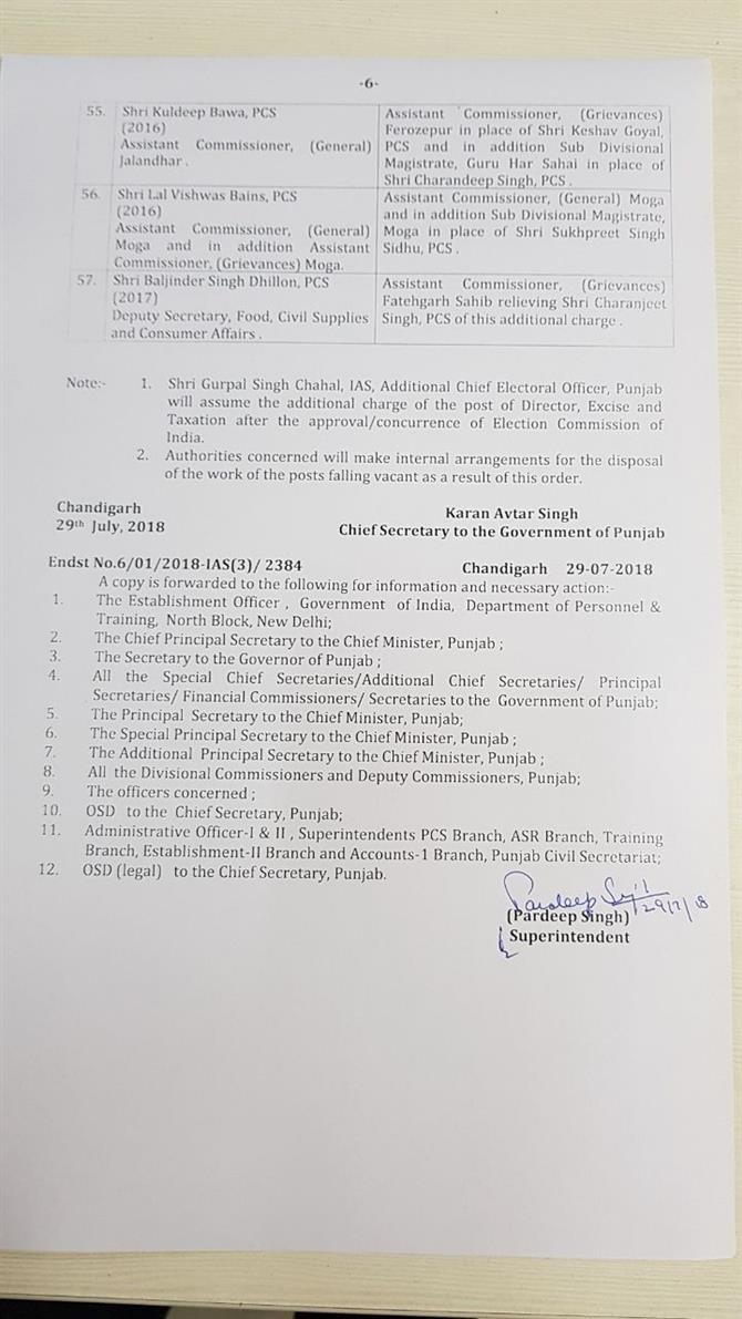 33 IAS ,24 PCS officers transferred in Punjab July 29, 2018 - PatialaPolitics SHARE ON TwitterFacebookGoogle+BufferLinkedInPin It Post Views: 0