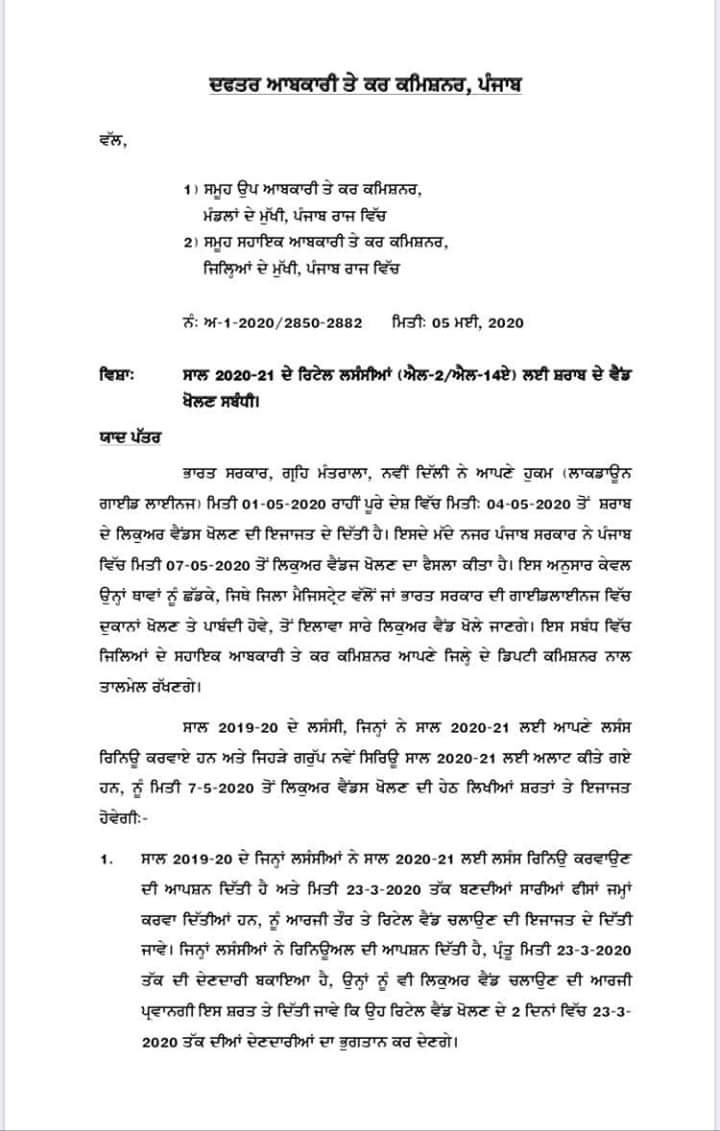 Home delivery of liquor in Punjab, Guidelines Notification May 6, 2020 - PatialaPolitics SHARE ON TwitterFacebookGoogle+BufferLinkedInPin It Post Views: 0