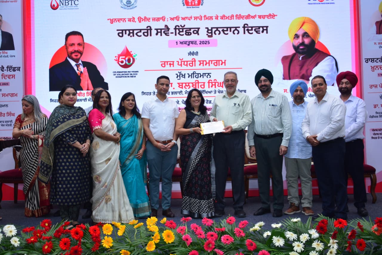 ਰਾਸ਼ਟਰੀ ਸਵੈ-ਇੱਛਕ ਖੂਨਦਾਨ ਦਿਵਸ ਸਬੰਧੀ ਰਾਜ ਪੱਧਰੀ ਸਮਾਗਮ ਯੂ.ਕੇ. ਰਿਜ਼ੋਰਟ, ਭਾਦਸੋਂ ਰੋਡ,ਪਟਿਆਲਾ ਵਿਖੇ ਮਨਾਇਆ ਗਿਆ। ਇਸ ਮੌਕੇ ਸਿਹਤ ਤੇ ਪਰਿਵਾਰ ਭਲਾਈ ਮੰਤਰੀ, ਪੰਜਾਬ ਡਾ. ਬਲਬੀਰ ਸਿੰਘ ਨੇ ਮੁੱਖ ਮਹਿਮਾਨ ਵਜੋਂ ਸ਼ਿਰਕਤ ਕੀਤੀ। ਸਮਾਗਮ ਦੌਰਾਨ ਸਵੈ-ਇਛਾ ਨਾਲ ਸਭ ਤੋਂ ਵੱਧ ਖੂਨਦਾਨ ਕਰਨ ਵਾਲੀਆਂ ਖੂਨਦਾਨੀ ਸੰਸਥਾਵਾਂ ਤੇ ਵਿਅਕਤੀਆਂ ਨੂੰ ਸਨਮਾਨਿਤ ਕੀਤਾ ਗਿਆ।