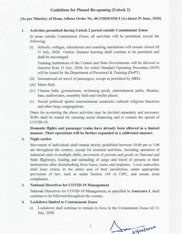 Govt of India announces guidelines for Unlock 2 June 29, 2020 - PatialaPolitics SHARE ON TwitterFacebookGoogle+BufferLinkedInPin It Post Views: 0