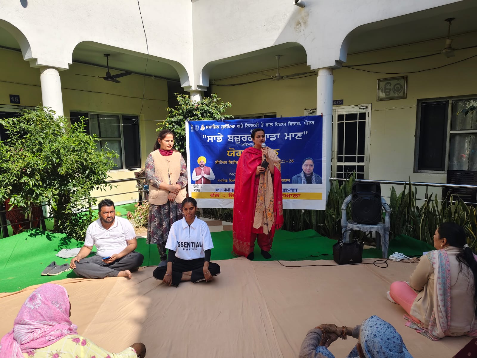 ਪੰਜਾਬ ਸਰਕਾਰ ਦੇ ਸਮਾਜਿਕ ਸੁਰੱਖਿਆ, ਇਸਤਰੀ ਤੇ ਬਾਲ ਵਿਕਾਸ ਵਿਭਾਗ ਵੱਲੋਂ ਸੀਨੀਅਰ ਸਿਟੀਜ਼ਨ ਸਟੇਟ ਐਕਸ਼ਨ ਪਲਾਨ 2025-26 ਤਹਿਤ “ਸਾਡੇ ਬਜ਼ੁਰਗ ਸਾਡਾ ਮਾਣ” ਮੁਹਿੰਮ ਦੇ ਤਹਿਤ ਅੱਜ ਮਾਤਾ ਖੀਵੀ ਬਿਰਧ ਘਰ, ਮੇਨ ਰੋਡ ਸੂਲਰ (ਪਟਿਆਲਾ) ਵਿਖੇ ਬਜ਼ੁਰਗਾਂ ਦੀ ਸਿਹਤ ਸੰਭਾਲ ਸਬੰਧੀ ਯੋਗਾ ਸੈਸ਼ਨ ਦਾ ਆਯੋਜਨ ਕੀਤਾ ਗਿਆ।