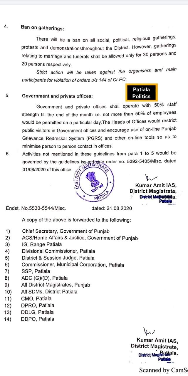 Coronavirus: Curfew orders by Patiala DC 21 August