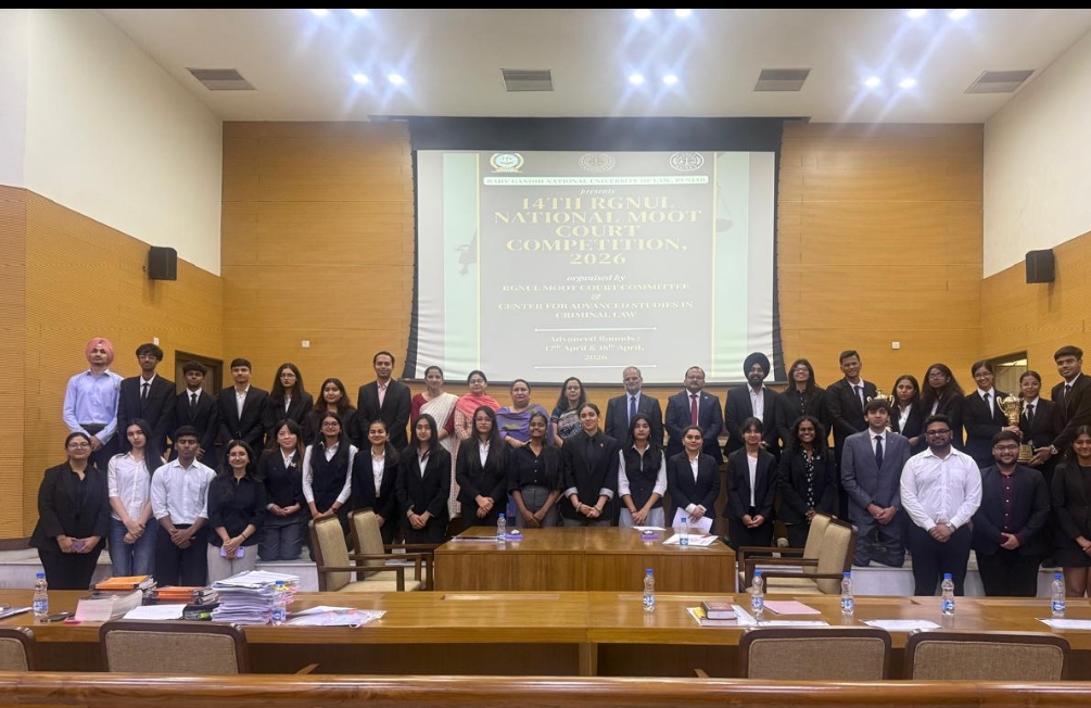 ਰਾਜੀਵ ਗਾਂਧੀ ਨੈਸ਼ਨਲ ਯੂਨੀਵਰਸਿਟੀ ਆਫ਼ ਲਾਅ, ਪੰਜਾਬ, (ਆਰਜੀਐਨਯੂਐਲ) ਨੇ 17-18 ਅਪ੍ਰੈਲ, 2026 ਨੂੰ 14ਵੀਂ ਆਰਜੀਐਨਯੂਐਲ ਨੈਸ਼ਨਲ ਮੂਟ ਕੋਰਟ ਪ੍ਰਤੀਯੋਗਤਾ, 2026 ਦਾ ਸਫਲਤਾਪੂਰਵਕ ਆਯੋਜਨ ਕੀਤਾ। ਇਸ ਮੁਕਾਬਲੇ ਦਾ ਉਦੇਸ਼ ਵਿਦਿਆਰਥੀਆਂ ਨੂੰ ਭ੍ਰਿਸ਼ਟਾਚਾਰ ਵਿਰੋਧੀ ਕਾਨੂੰਨਾਂ ਦੇ ਵਿਸਤਾਰ ਅਤੇ ਡਿਜ਼ੀਟਲ ਸੰਵਿਧਾਨਕ ਕਾਨੂੰਨਾਂ, ਵਾਈਟ-ਗਾਰਡ ਵਾਈਟ ਗਾਰਡਸ, ਸਫ਼ਾਈ ਗਾਰਡਸ ਦੇ ਵਿਸਤਾਰ ਬਾਰੇ ਉਭਰ ਰਹੇ ਨਿਆਂ-ਸ਼ਾਸਤਰ ਨਾਲ ਜਾਣੂ ਕਰਵਾਉਣਾ ਸੀ। ਡਿਜੀਟਲ ਸਵੈ-ਅਪਰਾਧ ਅਤੇ ਬਾਇਓ-ਮੈਟ੍ਰਿਕਸ ਦੇ ਸੰਬੰਧ ਵਿੱਚ, ਇੱਕ ਵਧ ਰਹੇ ਡਿਜੀਟਲ ਯੁੱਗ ਵਿੱਚ।