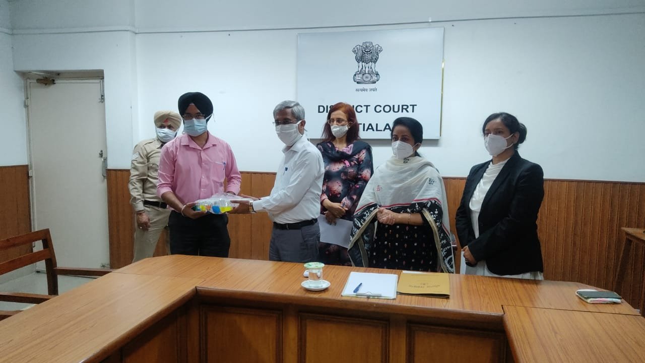 ਪਟਿਆਲਾ ਜ਼ਿਲ੍ਹਾ ਤੇ ਸੈਸ਼ਨਜ਼ ਜੱਜ ਰਾਜਿੰਦਰ ਅਗਰਵਾਲ ਨੇ ਕੋਵਿਡ ਮਹਾਂਮਾਰੀ ਤੋਂ ਬਚਾਅ ਲਈ ਸਕੂਲੀ ਵਿਦਿਆਰਥੀਆਂ ਨੂੰ ਵੰਡਣ ਲਈ ਅਧਿਆਪਕਾਂ ਨੂੰ ਸੌਂਪੇ ਮਾਸਕ