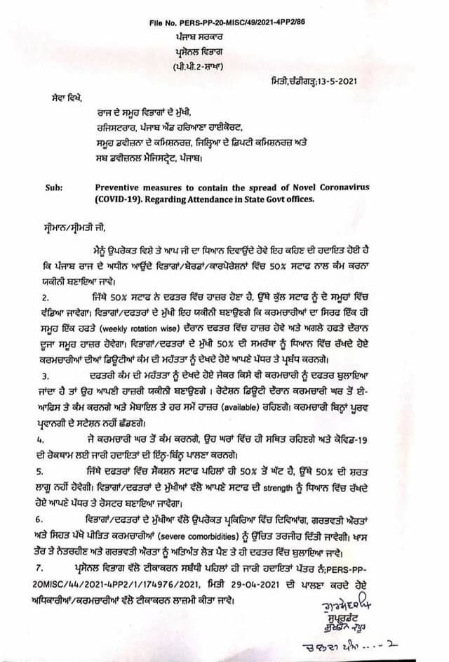 50% staff Notification for Punjab Government 13 May May 13, 2021 - PatialaPolitics SHARE ON TwitterFacebookGoogle+BufferLinkedInPin It Post Views: 0