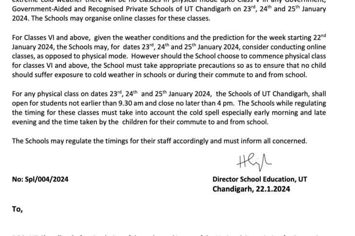 Featured Haryana News Headlines Punjab News Chandigarh extends school holidays till 26 January January 22, 2024