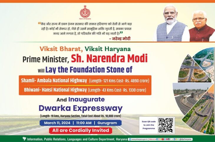 Featured Haryana News Headlines The Prime Minister Sh. Narendra Modi today inaugurated the 19 km long Haryana section of the 8-lane Dwarka Expressway in a national-level function held at Gurugram. Notably, an important part of the 60,000 crore Delhi de-congestion plan March 11, 2024