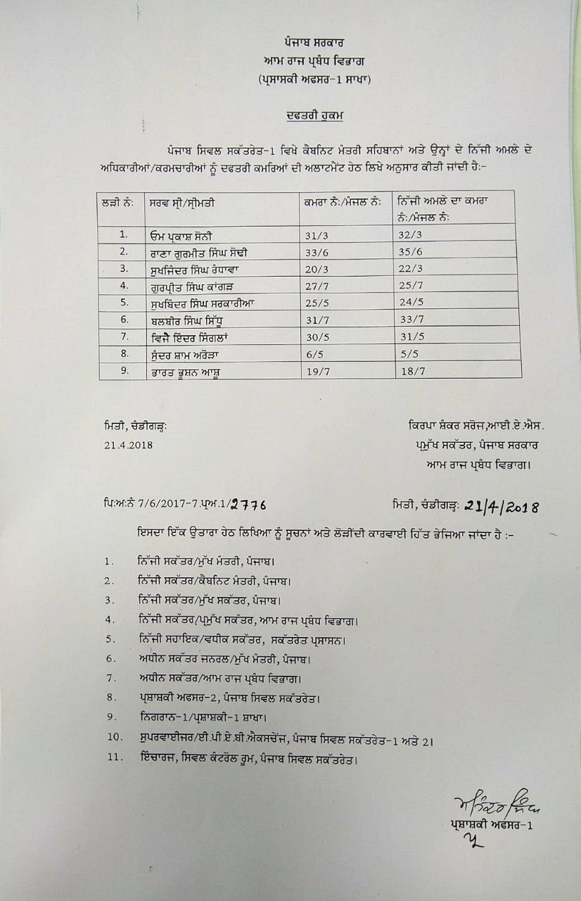 Featured Headlines Punjab Congress News Punjab News Rooms allotted to new Punjab Cabinet Ministers April 21, 2018