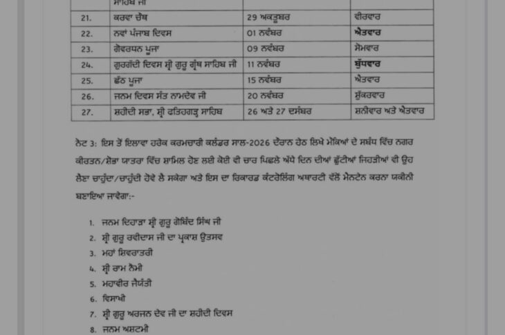 About Patiala AAP Punjab News Featured Headlines India News Patiala News Punjab News Punjab Government Holidays List 2026 November 26, 2025