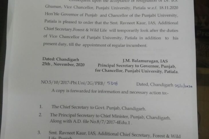 Featured Headlines Patiala News Punjab Government Notification Punjab News IAS Ravneet Kaur appointed Temporary VC of Punjabi University Patiala November 26, 2020