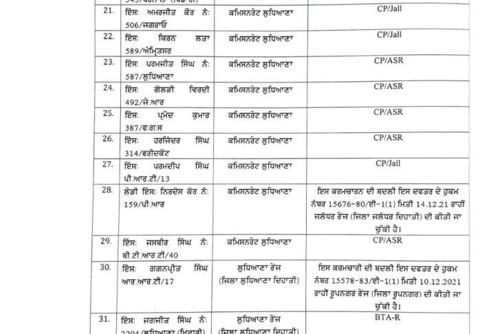 Featured Headlines Patiala News Punjab News Punjab Police News 77 Punjab Police officers transferred December 18, 2021