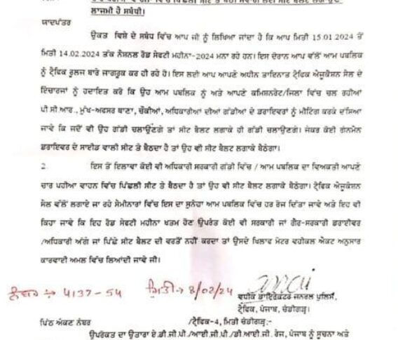 Featured AAP Punjab News About Patiala Headlines Patiala News Punjab News Punjab makes rear seat belts mandatory February 20, 2024