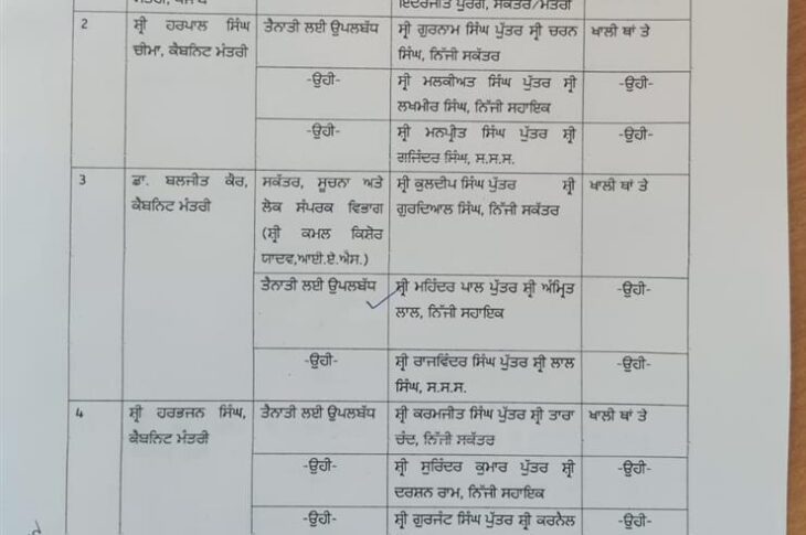 Featured AAP Punjab News Headlines Punjab News List of staff posted with Punjab Cabinet Ministers March 2022 March 21, 2022