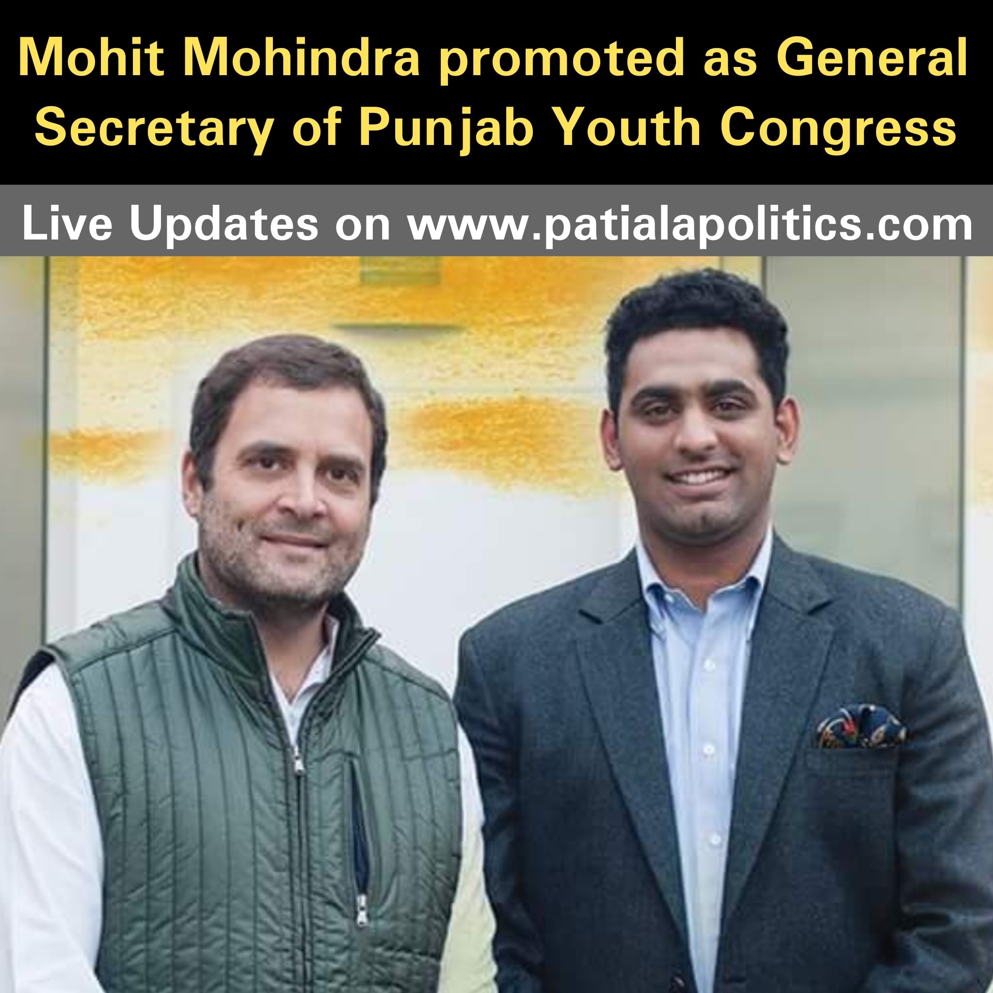 Featured Headlines Patiala News Punjab Congress News Mohit Mohindra promoted as General Secretary Punjab Youth Congress June 19, 2018