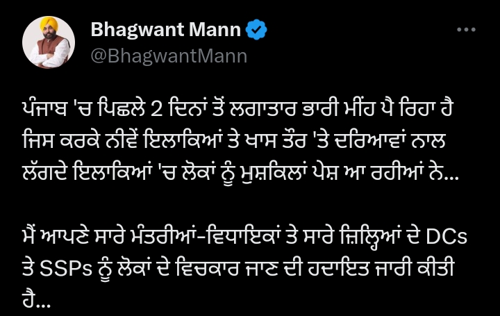 Featured AAP Punjab News Headlines Punjab News Shiromani Akali Dal News Punjab Rain : Strict orders by Bhagwant Mann July 9, 2023