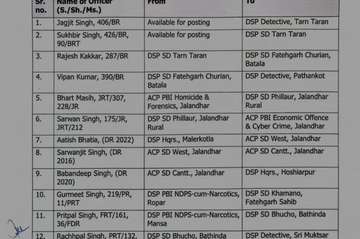 Featured About Patiala Headlines Patiala News Punjab News Punjab Police News Transfers in Punjab 61 DSPs Transferred in Punjab November 28, 2025
