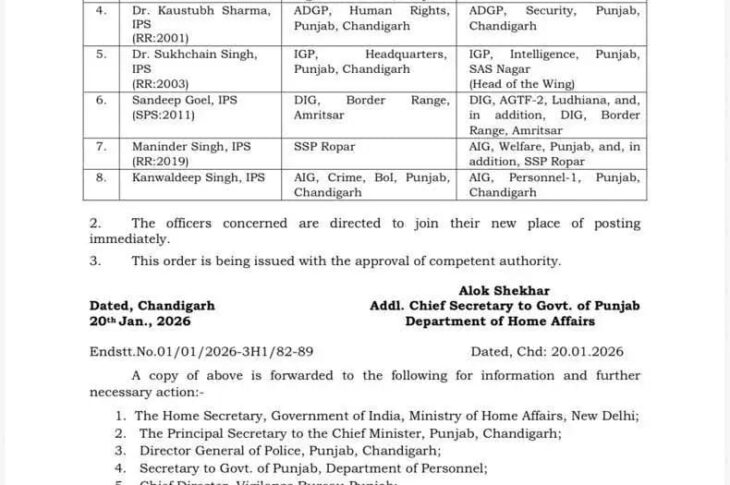 Featured Headlines Punjab News Punjab Police News Transfers in Punjab 8 IPS Officer’s Transferred in Punjab January 20, 2026