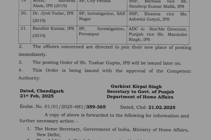 Featured Headlines Punjab News Punjab Police News Transfers in Punjab Major reshuffle in Punjab,many SSP rank officers transferred February 21, 2025