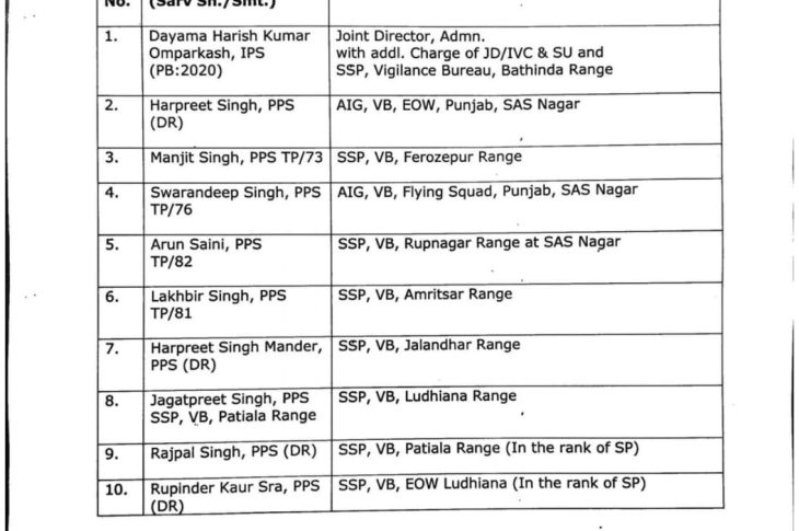 Headlines Featured Punjab News Transfers in Punjab 10 IPS/PPS Officers Transferred in Punjab March 10, 2025